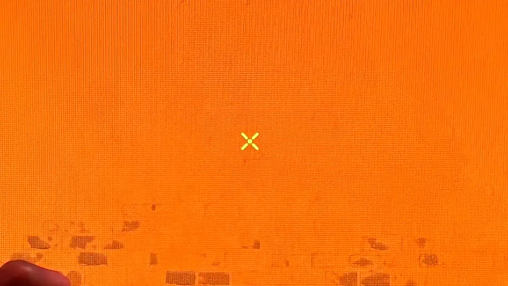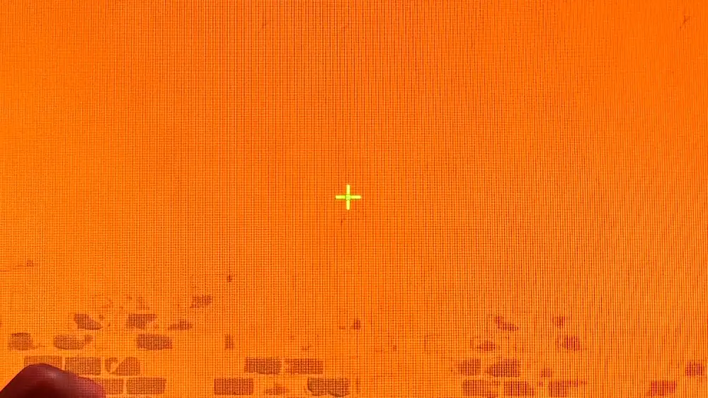 AMZG25F6Fには画面中央に照準を表示できるクロスヘア機能があり、3種類の形状が用意されています。上画像の2種類に加え、シンプルなドット型も選べ、色は黄緑と赤の2色に切り替え可能です。