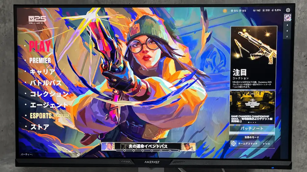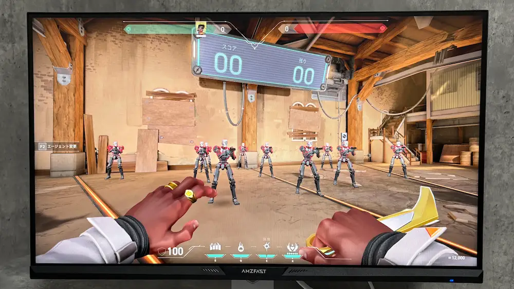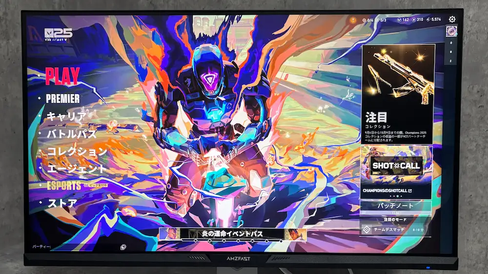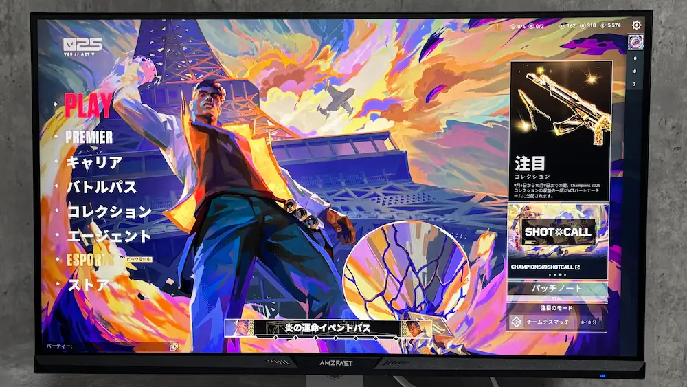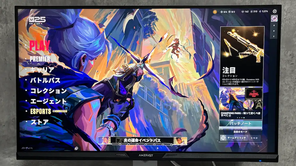 AMZG25F6Fは24.5インチのサイズが特徴で、VALORANTやFPSなどの競技シーンで標準的に採用されるサイズに近く最適。視野全体をカバーしやすく、敵の動きも把握しやすいため、集中力を保ちながらプレイできます。特に320Hzの高速描画と相まって、素早いエイムや反応が求められるゲームに最適なモニターです。