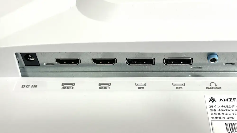 Amzfast AMZG25F6Fは背面もシンプルでスタイリッシュですが、内蔵スピーカーは搭載されていません。そのためヘッドホンを使うか、外部スピーカーを使う必要があります。高性能で格安なモニターということで、こういう部分でコストカットしてるのでしょう。