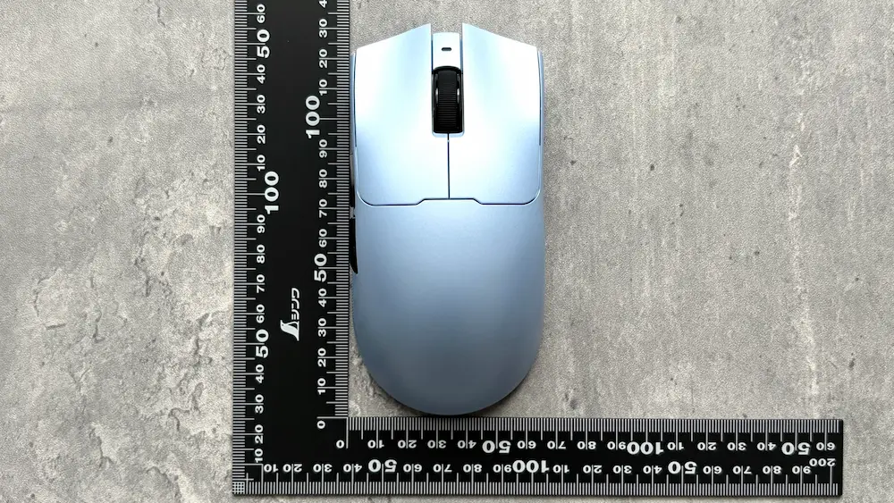 EWEADN S9V2 Ultraは長さ127mmと中・大型向けサイズです。Viper V3 Proに近い形状ですが、幅が0.9mm、高さが0.6mm大きくなっています。高さが増しているので、つかみ持ちはしやすいなと思いましたが、シンプルに大きめなので、今使っているマウスとサイズを比較してみるのが良いと思います。