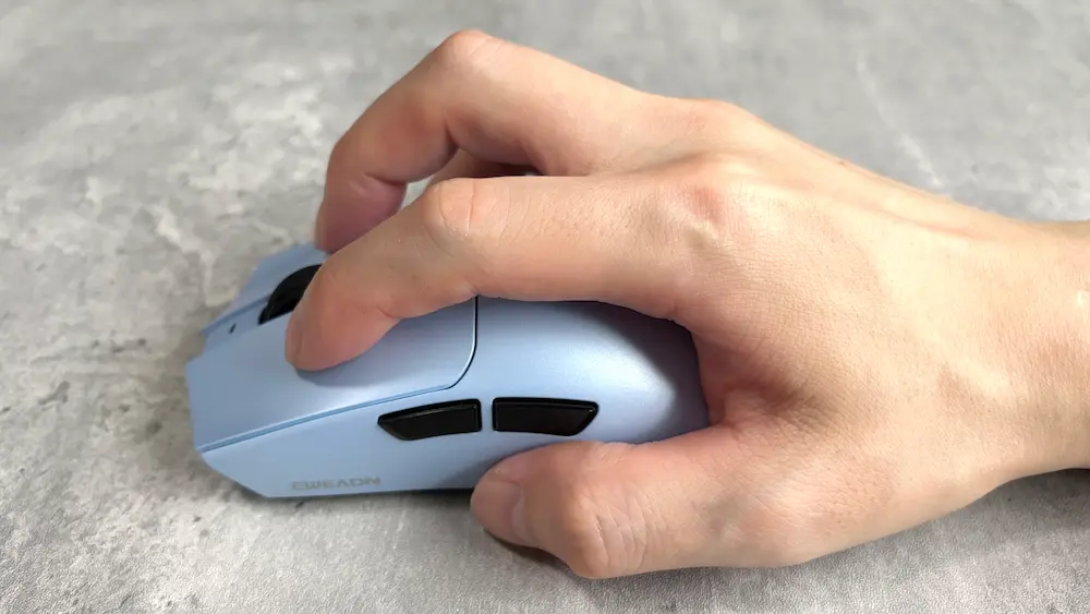 EWEADN S9V2 UltraはViper系に近い左右対称形状で、かぶせ持ちやつかみ持ちと相性抜群です 。Viper V3 Proよりも少し大きめなので、フィット感強めだと思います。ただ全長が127mmあるため、手が小さい方のつまみ持ちでは大きく感じる可能性も 。自分の手のサイズと相談して選ぶのが無難です。