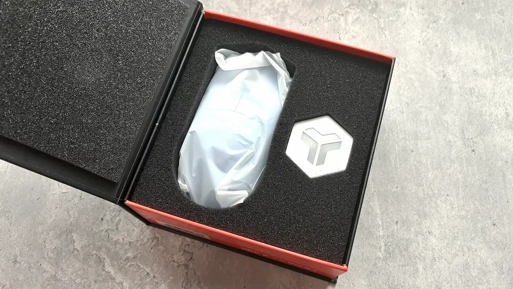 内容物は結構充実しています。マウス本体、ケーブル、ドングル、説明書以外に交換用のマウスソールとグリップテープが付属しておりました。グリップテープはサラッとした素材で本体カラーと同じ色がおそらく入っていると思います。