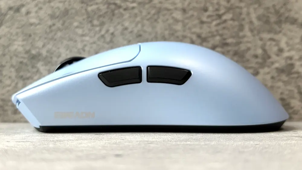 EWEADN S9V2 UltraのサイドボタンはHuano製スイッチ採用で、耐久性と明確な押し心地が特徴です。標準的なサイドボタンで癖がなく使いやすいと思います。静音性、硬さ含め標準的なスペックです。