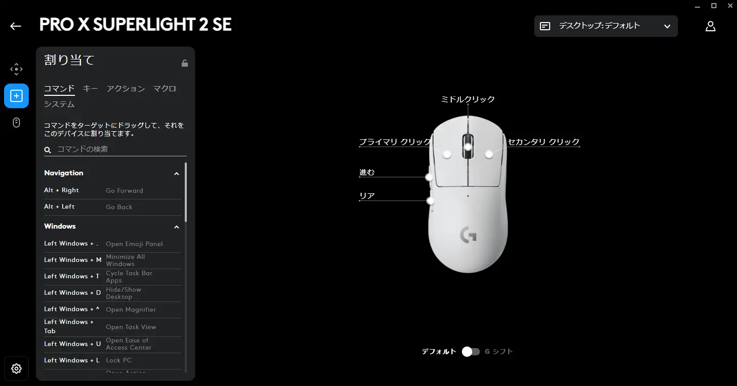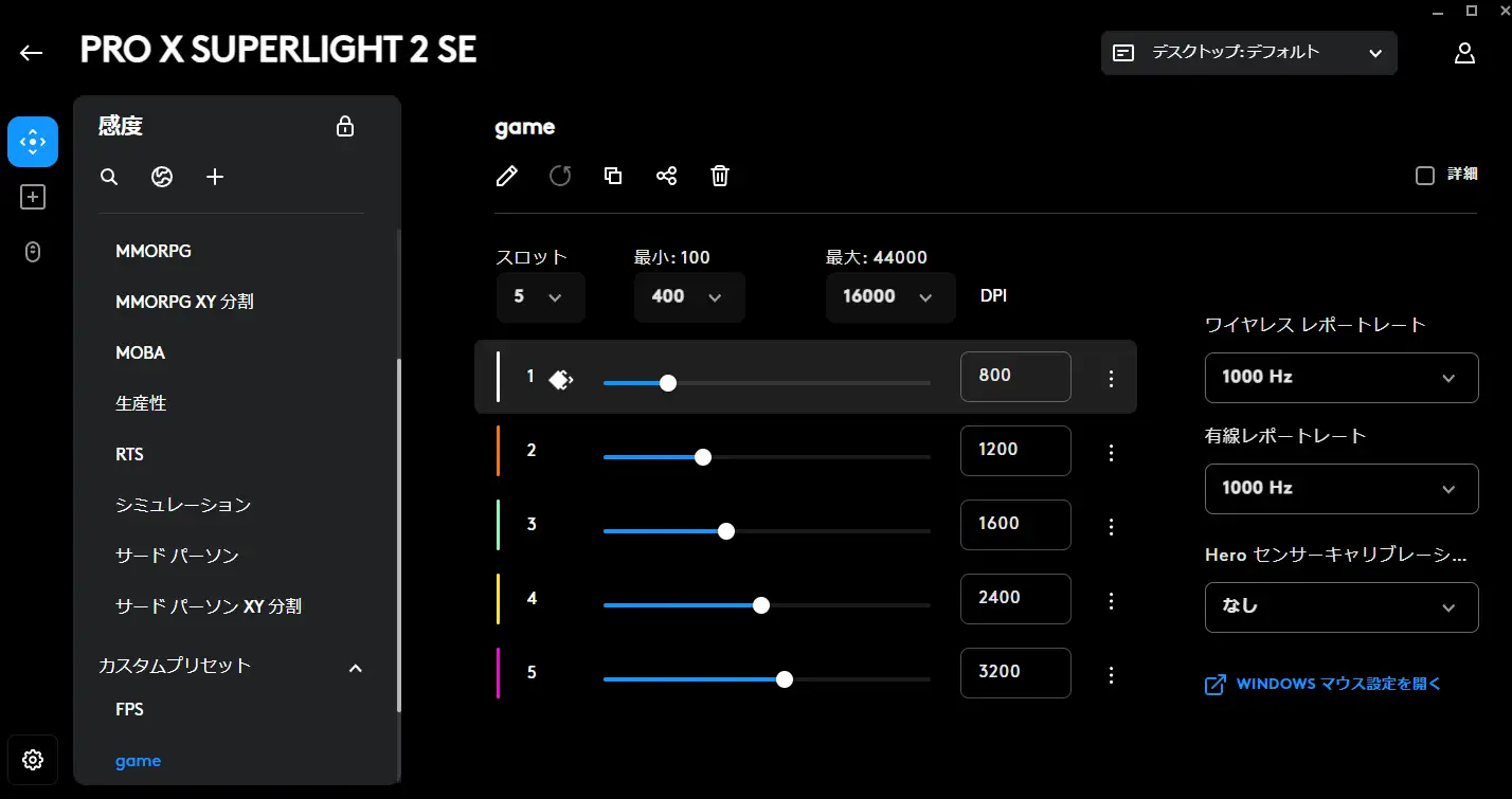 SUPERLIGHT 2 SEはロジクール製品なので「G HUB」で設定可能です。