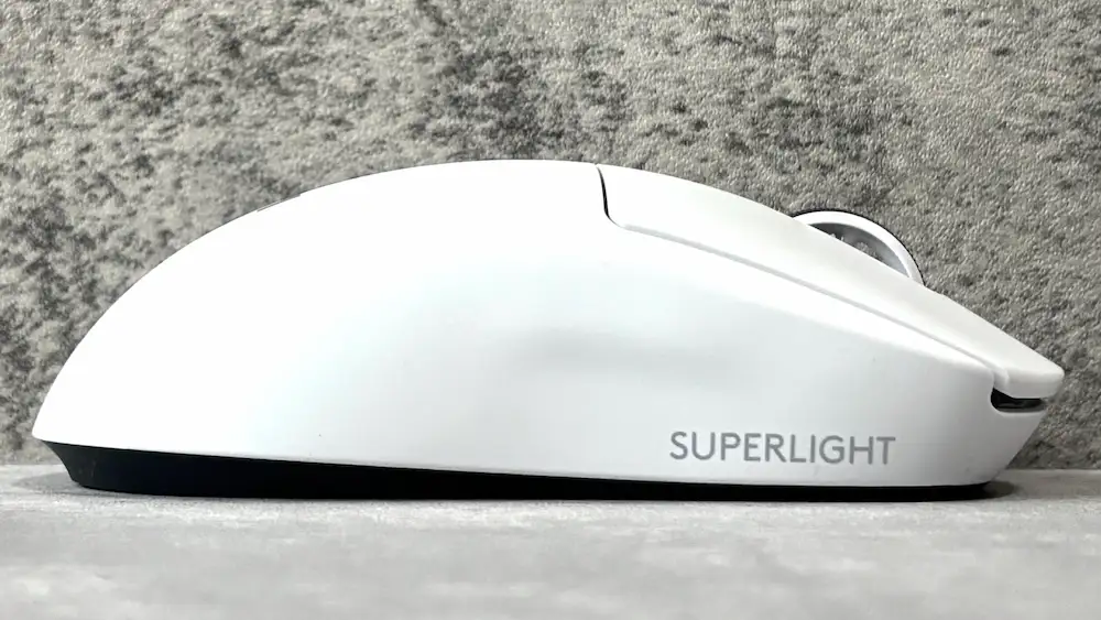 SUPERLIGHT 2 SEの左右デザインはSUPERLIGHT 2と同じ形状で、クセのない仕上がりで、指の収まりが自然です。サイド形状はフラット気味で扱いやすく、FPSの素早い持ち替えでも違和感がありません。