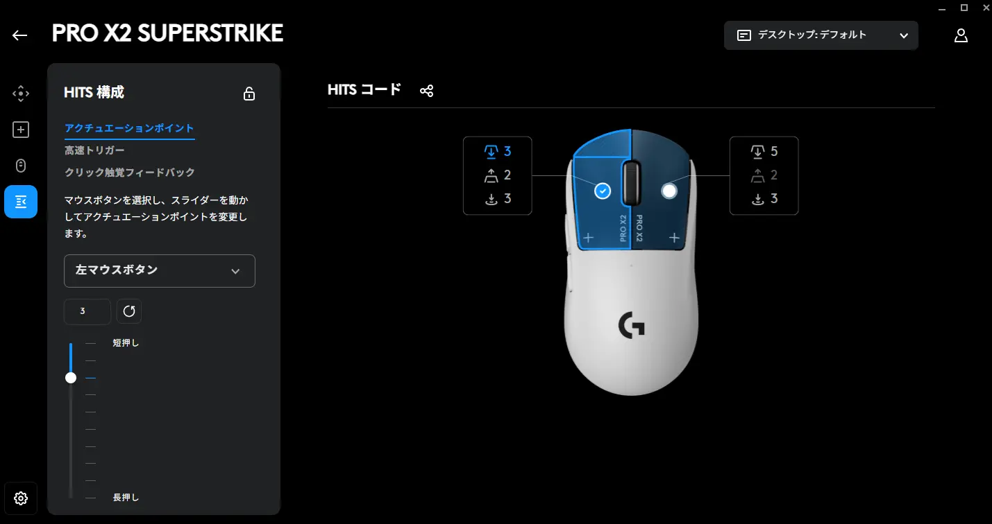 SUPERSTRIKEを使ってまず感じたのは、やっぱりHITSによるクリック感の違いです。アクチュエーションやラピッドトリガーを細かく調整できるので、FPSのタップ撃ちや連射ではかなり面白い操作感でした。特徴をまとめるとこんな感じです。